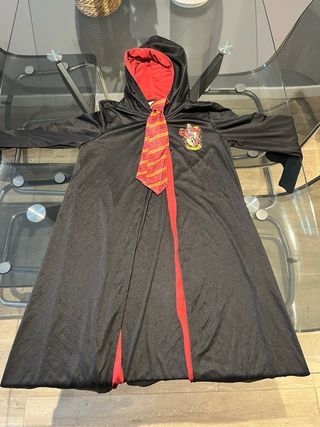 Capa de Harry Potter con capucha y corbata. - Diseño inspirado en la saga. - Interior en color rojo. - Escudo de Hogwarts en el pecho.