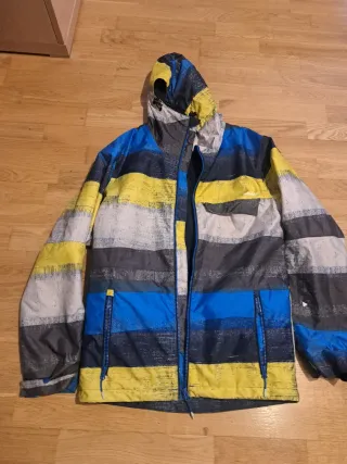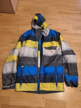 Abrigo de esquí con un diseño de rayas vibrante y moderno. Perfecto para tus aventuras en la nieve. - Diseño a rayas llamativo. - Capucha integrada. - Cremallera frontal completa. - Bolsillos con cremallera.