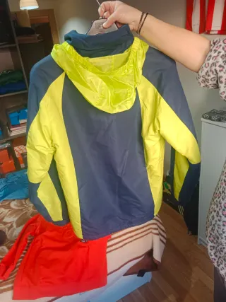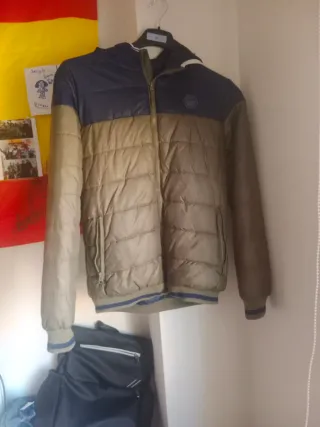Cazadora con un diseño interior llamativo y original. Está en perfecto estado. - Capa con capucha ( se puede quitar) con cremallera interior y cremallera frontal, que te abrigará bien en días de mucho frío. Es muy cómoda. - Cierre de cremallera frontal. Es decir, tiene doble cremallera frontal. Se vende por no usar. Estado impecable. Se puede negociar el precio.