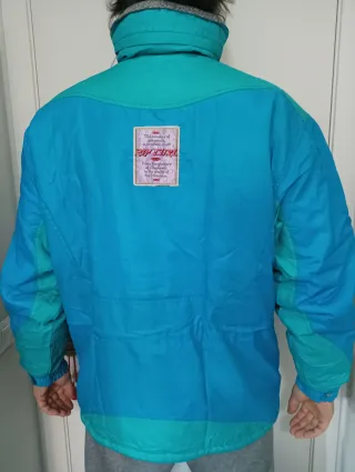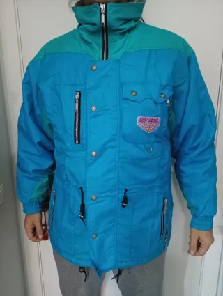 Abrigo de invierno de la marca Rip Curl, con un diseño vintage y colores llamativos. - Combinación de azul y verde. - Cierre de cremallera frontal. - Bolsillos con cremallera y solapa. - Cordones ajustables en la cintura.