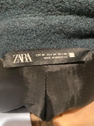 Abrigo elegante de la marca Zara en color negro. Su diseño clásico lo hace perfecto para cualquier ocasión. - Forro interior liso. - Bolsillo interior. - Cierre con botón.