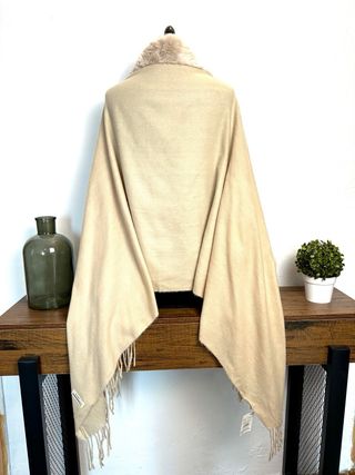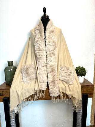 Capa fular Beige con Bolsillos y Pelo Sintético