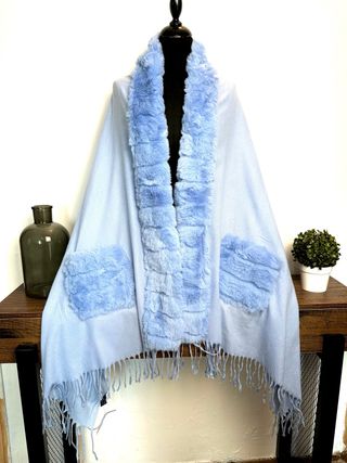 Elegante capa de pelo sintético. - Tacto suave y cálido. - Diseño envolvente. - Forro por dentro. - Ligera y calentita.