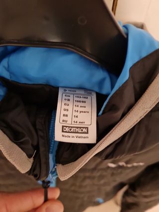 Abrigo decathlon Para lluvia, con capucha Buen estado Color azul Talla 14-15