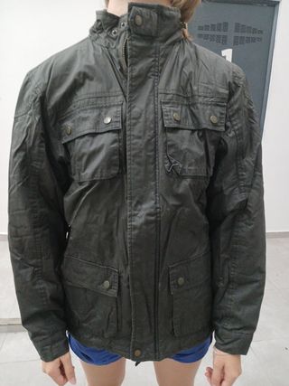 Abrigo tres cuartos de color verde caqui, de talla L, sin apenas uso.