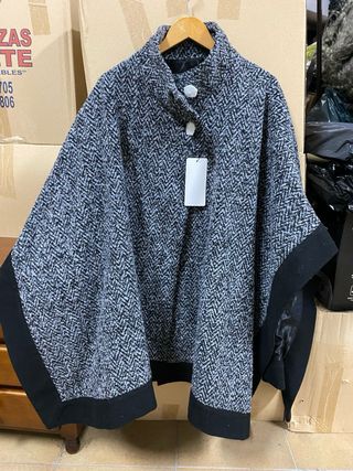 Capa oversize de Massimo Dutti. Color beige. Talla M. Ajustable. Dispone de capucha que se puede sacar o bien guardar en el compartimento del cuello.