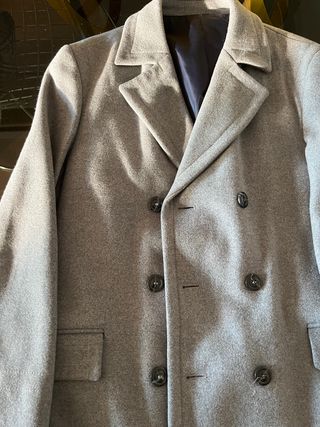 Abrigo de lana gris medio cruzado marca Caramelo. Muy buena calidad. Talla 50 más L que M aunque ceñido.