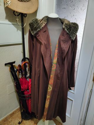 PERFECTO ESTADO CORTEFIEL Preciosa y calentita gabardina con forro y capucha con pelo imitación piel. Forma de capa, con cinta para fruncir al cuerpo. Por esta forma da talla. La puse dos veces. Guardada.