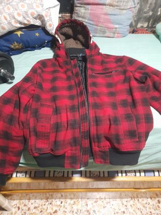 chaqueton/chaqueta reversible de cremallera con gorro, por un lado es impermeable y por el otro es de forro polar