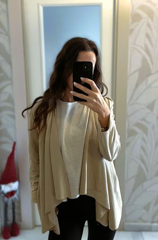 Rebeca de ante con un diseño abierto y moderno. - Material suave al tacto. - Corte fluido. - Color mostaza. - Poco usado y bien conservado. No tiene desgaste ni defectos. - Es muy cómoda y socorrida, muy práctica tanto para primavera como para invierno, debajo de abrigo **medidas** Hombros: 40cm Largo: 61cm Manga: 55cm *Para más información, no duden en contactarme*