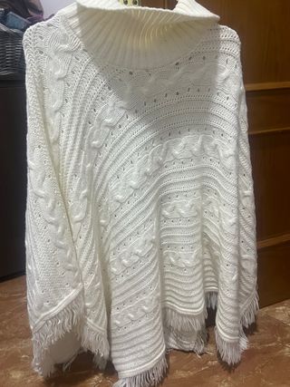 Poncho de punto con un diseño elegante y moderno. - Tejido suave y cálido. - Detalle de trenzas y calados. - Flecos en el bajo.