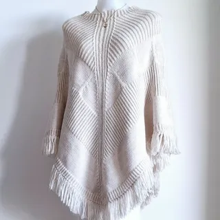 Poncho de punto con flecos, de invierno, de la firma italiana Rinascimento. Se puede llevar también colocado en horizontal. - Talla Única. Largo desde el centro del cuello 81cm + 8cm de flecos. NUEVO A ESTRENAR sin 🏷 - Pvp original 110€ - Descuento aplicado 56% - No negociable. Más artículos en mi perfil 🫠