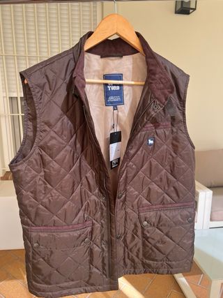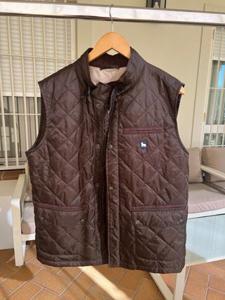 Chaleco acolchado de estilo clásico, perfecto para añadir una capa extra de abrigo. - Diseño acolchado con rombos. - Cierre de cremallera y botones a presión. - Bolsillos frontales con solapa. - Detalle de logo en el pecho.