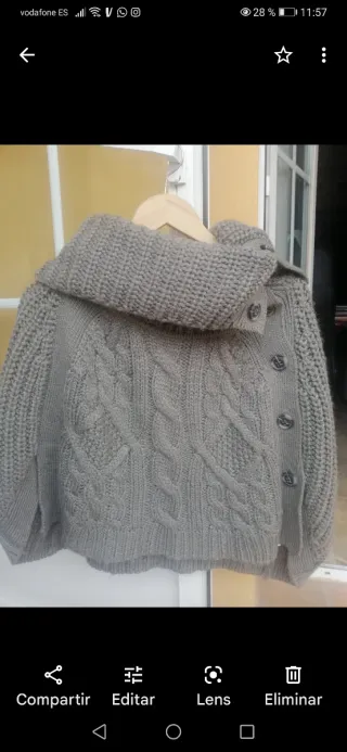 Poncho de punto grueso con cuello alto y botones. - Diseño de trenzas. - Cuello alto enrollado. - Cierre de botones en un lateral.