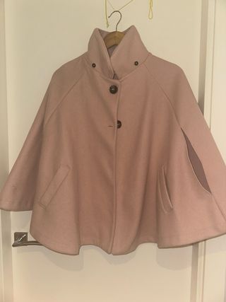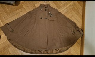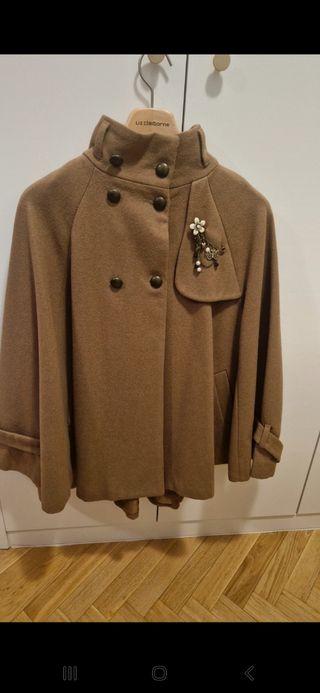 Precioso abrigo muy favorecedor. No es ajustado sino tipo capa con cierre de corchetes. Cuello altito con capucha.