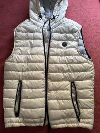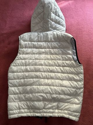 Chaleco acolchado con un diseño moderno y práctico. Perfecto para añadir una capa extra de abrigo. - Cierre de cremallera frontal. - Bolsillos laterales con cremallera. - Capucha integrada. Casi nuevo solo usado un par de veces