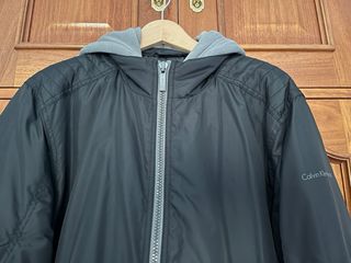 Chaqueta Calvin Klein en color negro, con un diseño moderno y práctico. - Capucha integrada, que se puede quitar. - Cierre frontal de cremallera. - Bolsillos laterales con cremallera. - Detalle de costuras en los hombros. Está como nueva, como puede apreciarse en las fotografías.