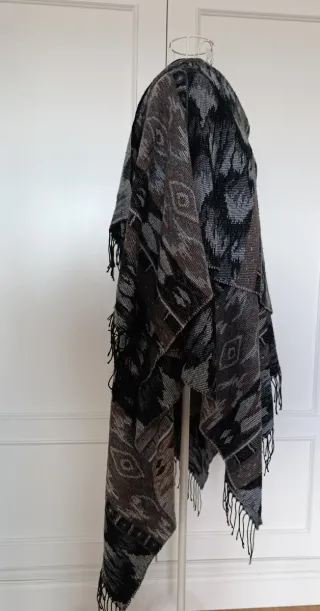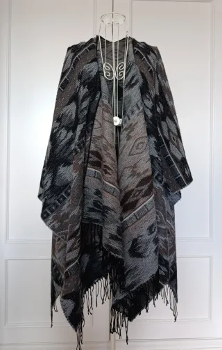 Preciosa capa con un diseño étnico. - Diseño con estampado geométrico y tribal. - Acabado con flecos en el borde inferior. - Tejido suave y cálido.