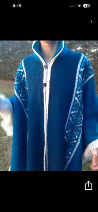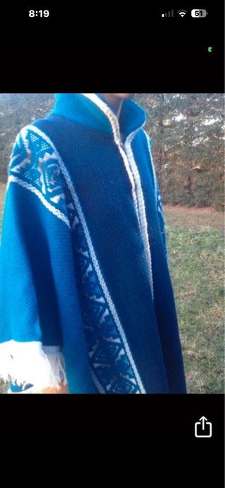 Capa /Poncho artesanal Ecuador azul y blanco