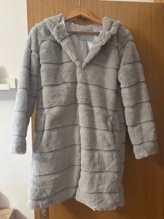 Abrigo gris de pelo sintético con capucha
