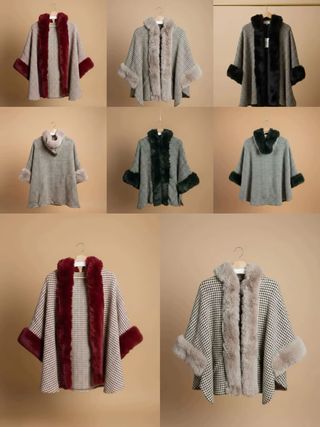Preciosa capa con un diseño sofisticado y detalles de pelo. - Ribete de pelo sintético en mangas y cuello. - Tejido suave y cálido. Entrega en mano en Zaragoza