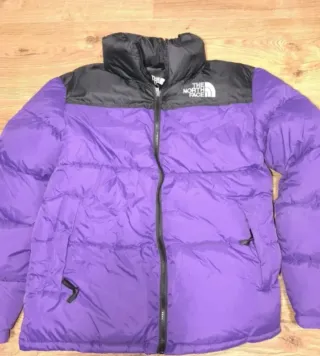 Abrigo acolchado de The North Face con un diseño bicolor. - Parte superior en color negro. - Parte inferior en color morado. - Cuello alto.