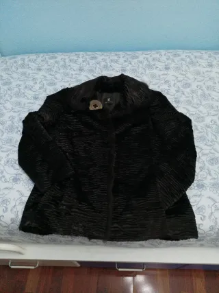Bonito abrigo símil astracán negro, no es piel.