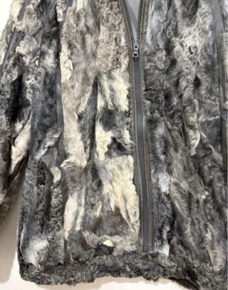 Elegante chaquetón de piel de astracán en color gris. Una prenda clásica y sofisticada. - Piel de astracán. - Cuello de pelo. - Talla 46.
