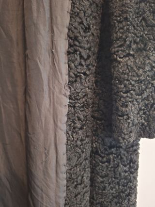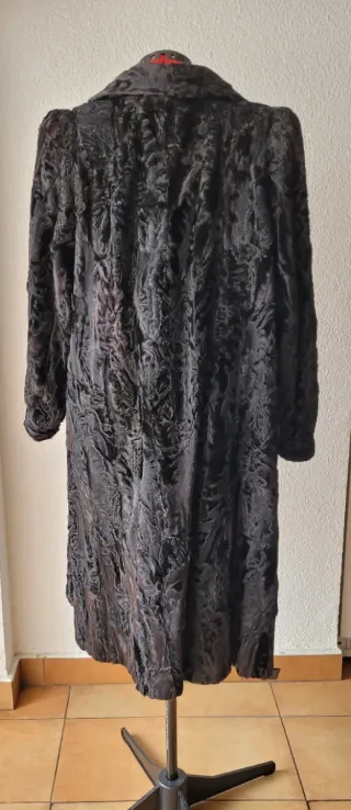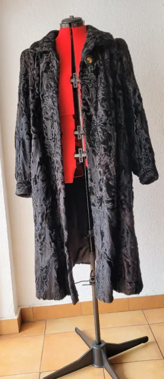Abrigo de Astracán auténtico. Es una antigüedad pero muy poco usado. Talla S. Largo: 95cm, Ancho Hombros: 46cm, Largo Mangas: 54cm.