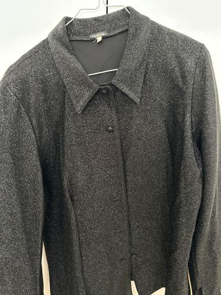 Chaqueta con tejido brillante, ideal para eventos o fiestas. - Diseño con cuello - Cierre de botones - Tejido con hilos plateados