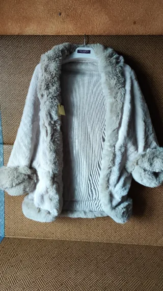 Elegante torera de pelo sintético, ideal para eventos especiales. Presenta un bonito lazo satinado en la parte delantera. - Material exterior: pelo sintético. - Cierre con lazo satinado.