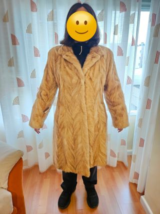 -40% (Valorado en 650€) Nuevo, con etiqueta (en el brazo, parcialmente cortada). Elegante abrigo 7/8 de pelo semi-rasado, hebras en color pastel. Hecho en España. De gran calidad. Talla 48 (para llevar talla L debajo). Sofisticado y duradero, ideal para eventos y ceremonias especiales. Acabado sedoso, color luminoso. Revisado por modista especializado para certificar su buen estado. 💬 Si necesitan más fotos, medidas, info... no duden en preguntar. - Cuerpo semi-entallado con modelaje actual - Cuello chimenea de doble postura - Forro dorado de calidad - Bolsillos frontales - Bolsillo interior (en pecho) # Abrigo Lujo Fiesta