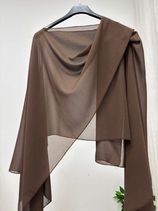 Elegante capa de gasa en color marrón, ideal para eventos y fiestas. - Tejido ligero y vaporoso. - Diseño versátil que complementa cualquier atuendo.