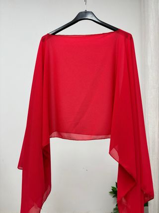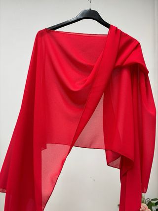 Elegante capa de gasa en color rojo, ideal para eventos y fiestas. - Diseño vaporoso y ligero. - Acabado con borde cosido.