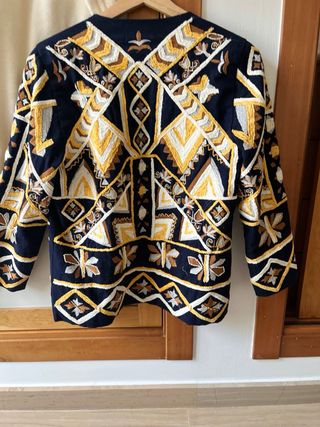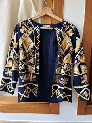 Chaqueta Zara Bordada Azul Amarillo abalorio