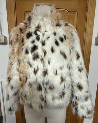 Abrigo Y2K de pelo sintético animal print XS Nuevo