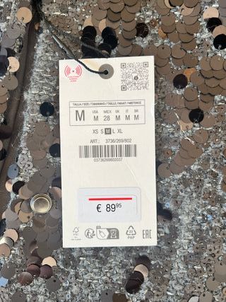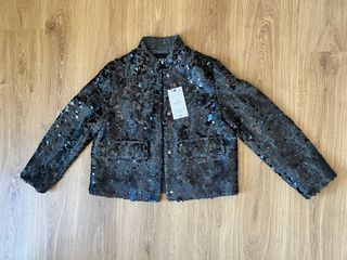 Elegante blazer de Zara con un diseño brillante de lentejuelas. Ideal para eventos y fiestas. - Chaqueta con lentejuelas. - Cierre de botones. - Bolsillos delanteros.