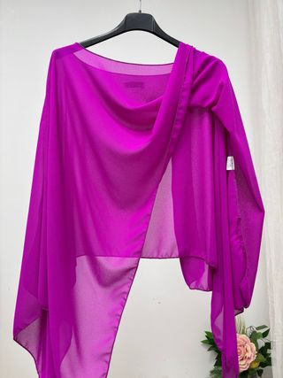 Elegante capa para eventos o fiestas. Su diseño fluido la hace muy versátil. - Tejido suave y con caída. - Diseño abierto.