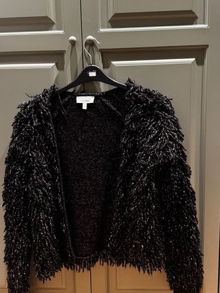 Chaqueta negra corta tipo torera con bolitas plateadas. queda muy bonita. miy suave al tacto. Dice M pero para S tamb queda bonita... mas holgada