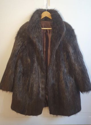 Elegante chaquetón de pelo sintético con un diseño moderno, cálido y de tacto muy suave, con cierres invisibles. En perfecto estado tanto interior como exterior. Ideal para fiestas y eventos. - Material: Poliéster. - Textura suave y agradable al tacto. - Corte holgado para mayor comodidad.