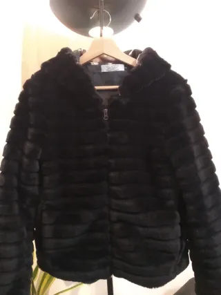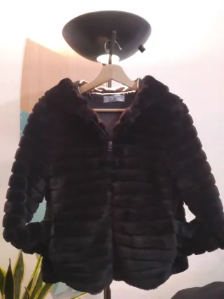 Preciosa chaqueta de pelo en color negro con capucha. Ideal para estas fiestas 💖💖💖 Talla S, pero talla grande. Sirve para S y M. De hecho, yo uso M. - Diseño elegante. - Cierre de cremallera frontal. - Mangas largas. - Forro interior.