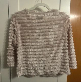 Elegante torera de pelo sintético, perfecta para eventos o fiestas. - Diseño corto y abrigado. - Tacto suave y agradable. - Cierre frontal con un ganchito a la altura del cuello Es una 40 pequeña