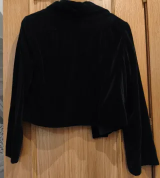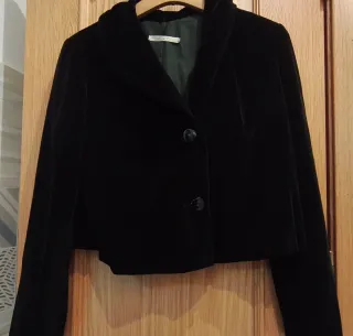 Elegante chaqueta corta confeccionada en terciopelo. Su diseño la hace ideal para eventos especiales. - Cierre de dos botones. - Cuello solapa. - Forro interior. Ideal para eventos, bodas, Navidades. Sin uso. 47cm. de largo 42 cm. De hombro a hombro 50 cm. entre sisas. Queda preciosa puesta