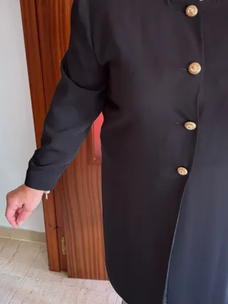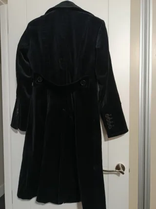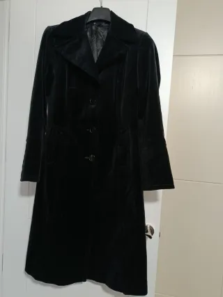 Elegante abrigo de terciopelo, perfecto para ocasiones especiales. - Material: Terciopelo. - Color: Negro. - Diseño: Largo con botones.