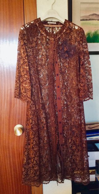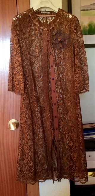 Abrigo de encaje marrón para fiestas