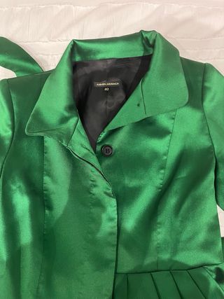Abrigo de fiesta verde, corte muy original.