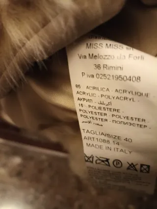 Abrigo de pelo sintético, perfecto para ocasiones especiales. Tacto muy suave y agradable. Diseño elegante. Un día de uso. Fabricado en Italia. Talla U.