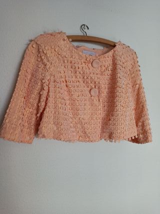 Chaqueta fiesta, torera rosa claro sin estrenar, con etiqueta por anulación de boda y no poder devolverla ,comprada en boutique de Zaragoza.No se aprecia bien el color pero es tono rosa