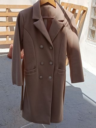 Elegancia a fantástico precio!! APROVECHA, SON FANTÁSTICO REGALO 🎁 IDEAL PARA TI O ALGUIEN QUE QUIERAS ESTAS PROXIMAS FIESTAS DENAVIDAD 🎄!!! DATE PRISA O TENDRÁS QUE PENSAR OTRO 🎁 REGALO! Los precios suben conforme se acercan las fiestas!!! Precioso y elegante abrigo largo (tipo midi) de corte clásico. Perfecto para añadir un toque sofisticado a cualquier atuendo. - Diseño de doble botonadura. - Cuello solapa y forro. - Dos bolsillos frontales. - Cinturón a juego. Color beige claro aunque en las dos primeras fotos sale muy oscuro por la sombra... Llevado un par de veces solo.