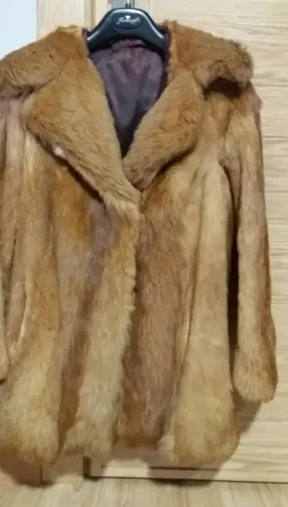 Chaqueta, abrigo corto .... de pelo de conejo. Manga francesa forro interior de raso. Complemento perfecto Nochevieja, boda y fiesta Color vino. Medidas : Hombros 38 de axila a axila 48 Largo 50 Marga 51 Cintura 45